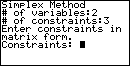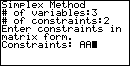 the program asks for the number of constraints. Our problem has 3 constraints.
