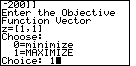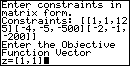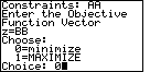 The program now asks for the "Objective Function Vector".