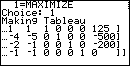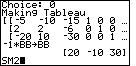 Figure 16. Here, the calculator has created the TABLEAU and is displaying it