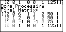 Once this is done, the calculator displays the resulting matrix and pauses