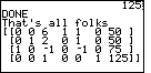 | The program announces, in Figure 43, that we are done, and it redisplays the matrix. |