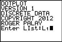 We will generate a list of data on the calculator, using GNRND4 with Key 1=413728702 and Key 2=4100325. That list will be the same numbers that appear in the following table: Thus, our problem will be to generate a dot plot diagram for the data in the list above.