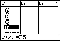 We need to start with some data. We will generate a list of data on the calculator using GNRND4 with Key 1=131425002 and Key 2=1100026. That list will be the same numbers that appear in the following table: Thus, our problem will be to generate a frequency table for the data in the list above.