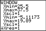 Figure 58 shows the WINDOW values established by the data we have and the default attempts of the calculator brought into play by the ZoomStat option. We want to revise these settings so that each class will hold one and only one of our 12 different values. Our changes are shown in Figure 59. | ||||||||||||||||||||||||||
