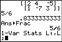 Here we have simply asked the calculator to convert our previous answer to fractional form, and the calculator has done so by displaying the fraction on a single line. |