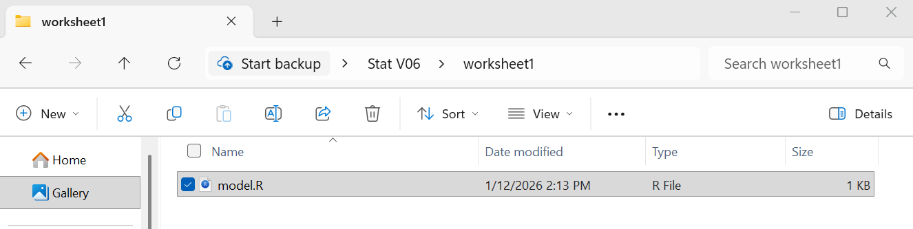 Once the sub-folder has been created and renamed, we locate the model.R