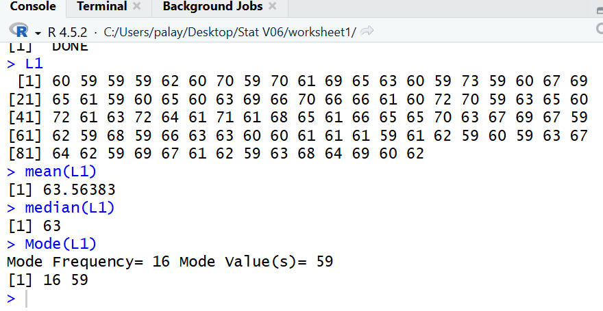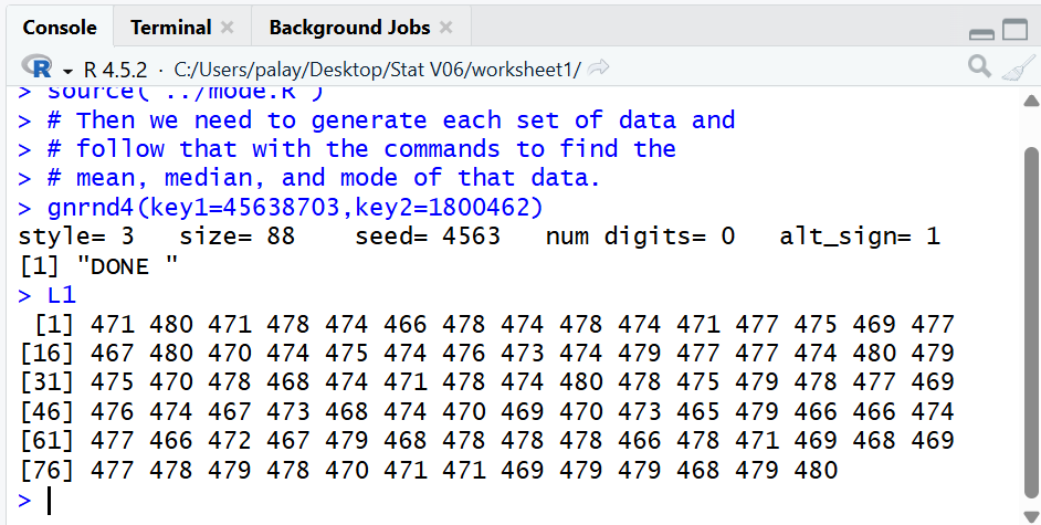# mean, median, and mode of that data.
