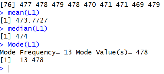 mean is 473.7727, the median is 474,