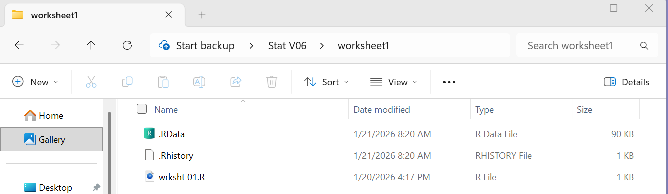 We notice that the name of the file, wrksht 01.R,