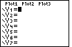 | Now we will enter the new function by moving to the Y= screen, via