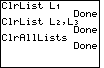 | Figure 8 shows the calculator response, Done. All lists have been reset. |