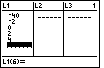 | Figure 12 shows the first three lists, L1 L2 and L3 that are in the list editor (L4, L5, and L6 are in the editor but are note shown). Each of the lists is empty, which is what we expect having given the ClrAllLists command back in Figure 8. The highlight is on the place in L1 where the first value could be entered. Furthermore, at the bottom of the display, we note that the calculator is waiting for a value to be placed into L1(1) |