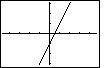 | Figure 42 shows the graph of y=2x-1 on the ZStandard settings. This graph does not appear in the book. Rather, the right graph at the top of page 128 has the X-values going from -1 to 1 and the Y-values going from -10 to 10. We can return to the WINDOW screen to see the settings effected by the ZStandard option. |