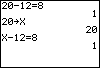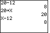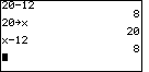 Second, we can store 20 into the variable X and then type X-12, press ENTER and get the