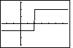 Move to the GRAPH screen. Note the portion of the graph below the x-axis and the portion above the x-axis. Also note that the two portions are connected by an almost vertical line. The calculator does this because we had set the FORMT for DrawLine. | |