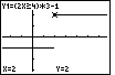 Start the TRACE menu option and position the marker to x=2. Note that the marker is at the top line. | |