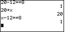 Therefore, on the TI-83, if we enter 20-12=8, the calculator checks to see if this