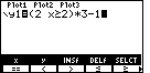 Turn on the TRACE feature and position the marker to x=2. Note that the marker is at the top line. | ![]() |