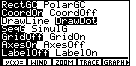 Before graphing the function, we go back to the GRAPH menu, use the MORE key to find the FORMT option, and select that option to display this screen. | |