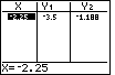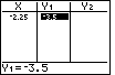 | Having moved to the right, the calculator responds by displaying the Y3 column. To do this, the calculator lost the Y1 column and shifted the Y2 column to the left. The three column display of the TABLE screen does not change. Rather the calculator always leaves the independent column in place and scrolls the dependent columns as needed. |