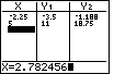 | Again, moving the cursor to the right to look at the value in the third column, the table shows 1.4921 whereas the bottom of the display gives the computed value as 1.49206139194. |