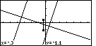 | In Figure 84 we have moved the + marker so that is approximately on top of the intersection of the two lines. Judging from the coordinates at the bottom of the screen, the lines cross at or near (1.9,3.7). Let us manufacture a screen that uses decimal values and that includes this point. |