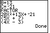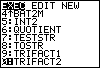 We conclude this page with few sample runs of the TI-83 version of the TRIFACT2 program: