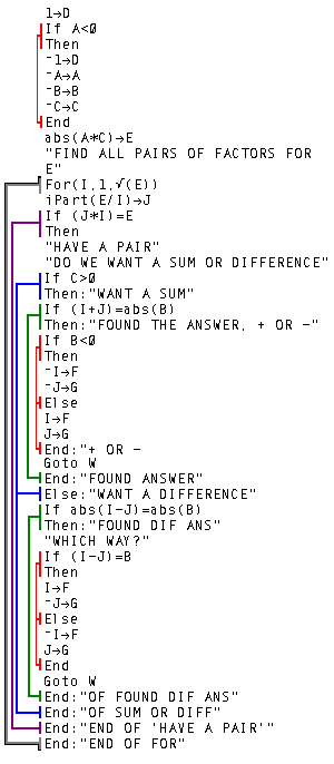 The web page trifact1.htm presents and describes a program that performs the "split the middle term" scheme for factoring trinomials of the form